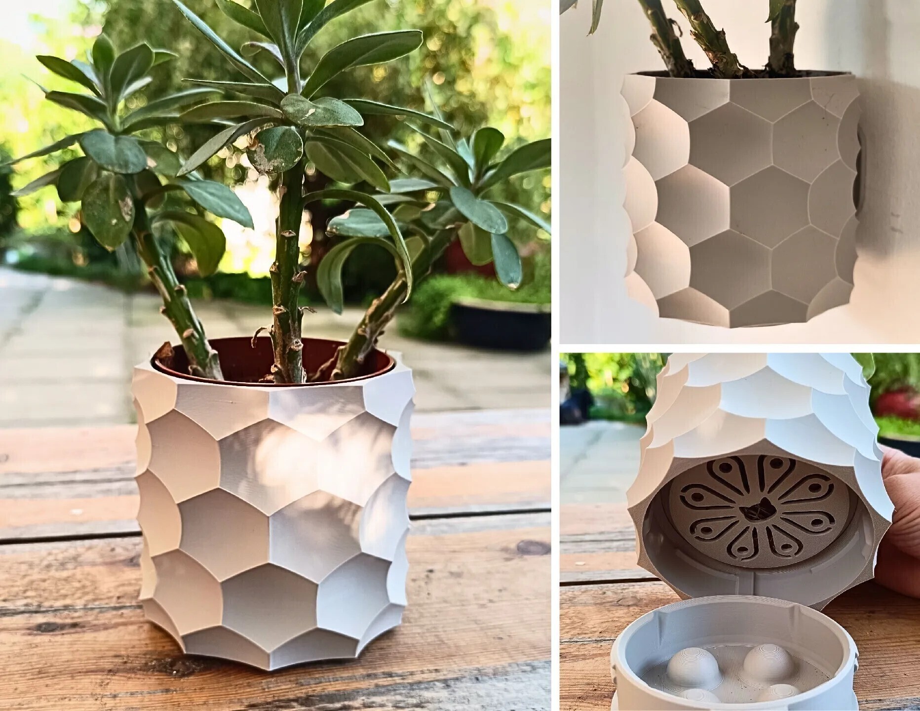 این گلدان با تکنولوژی پیشرفته چاپ سه بعدی ساخته شده است ، شما میتوانید از آن به عنوان یک دکوری زیبا در خانه و بیرون از خانه با خیال راحت استفاده کنید.