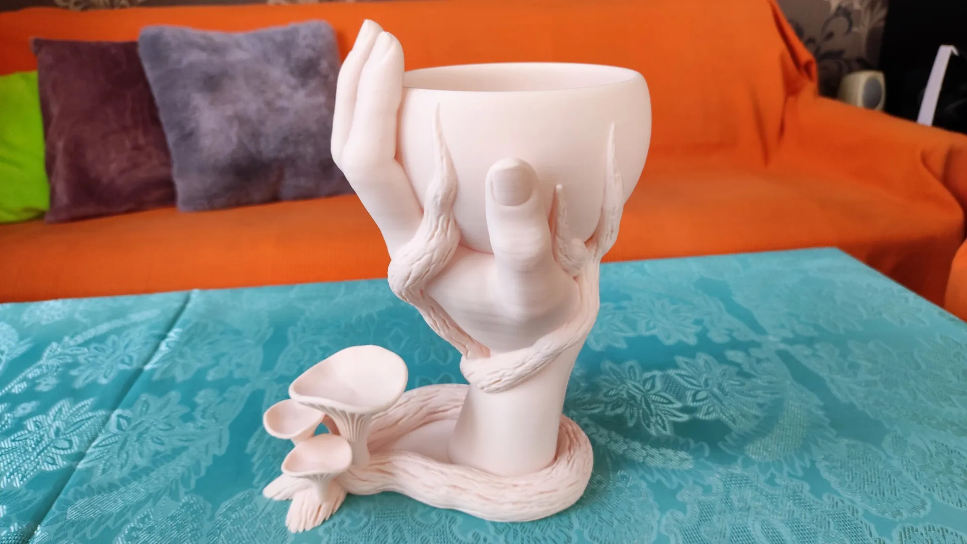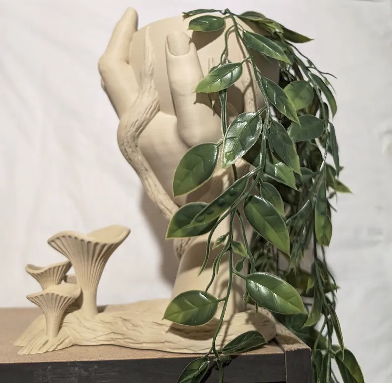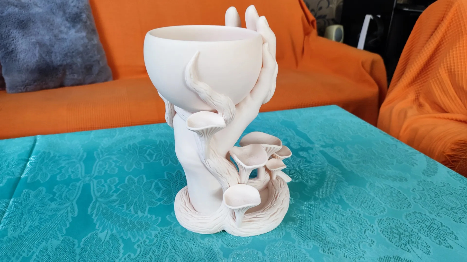 اگر به دنبال گلدانی خاص و منحصر‌به‌فرد هستید که تلفیقی از طبیعت و هنر مدرن را به فضای شما بیاورد، گلدان رومیزی طرح دست و قارچ مدل Deco Hand 04 انتخابی متفاوت و الهام‌بخش است. طراحی این گلدان با بهره‌گیری از فرم دست انسان و رشد قارچ از میان آن، مفهومی از زندگی، رشد و پیوند انسان با طبیعت را به تصویر می‌کشد.