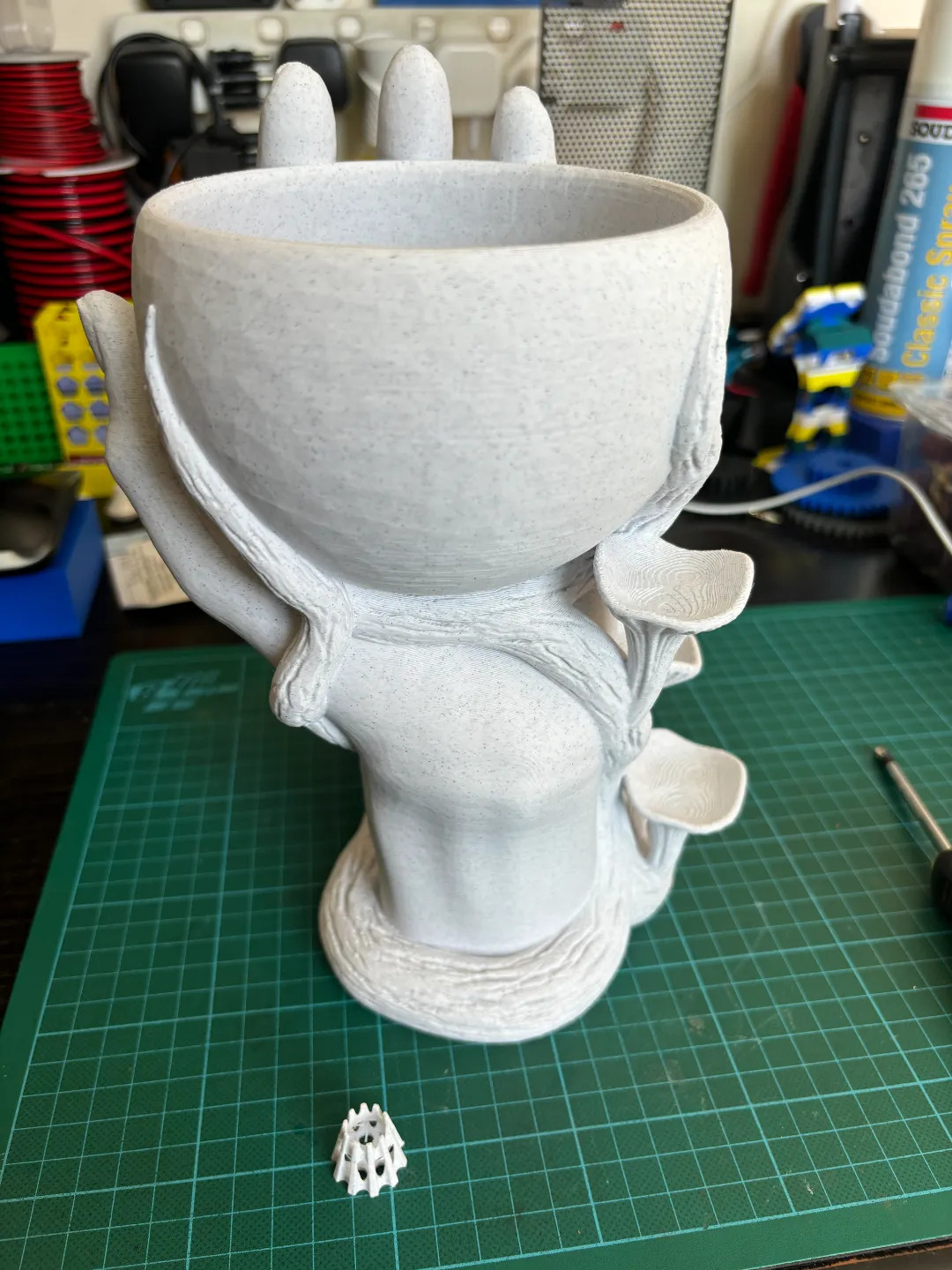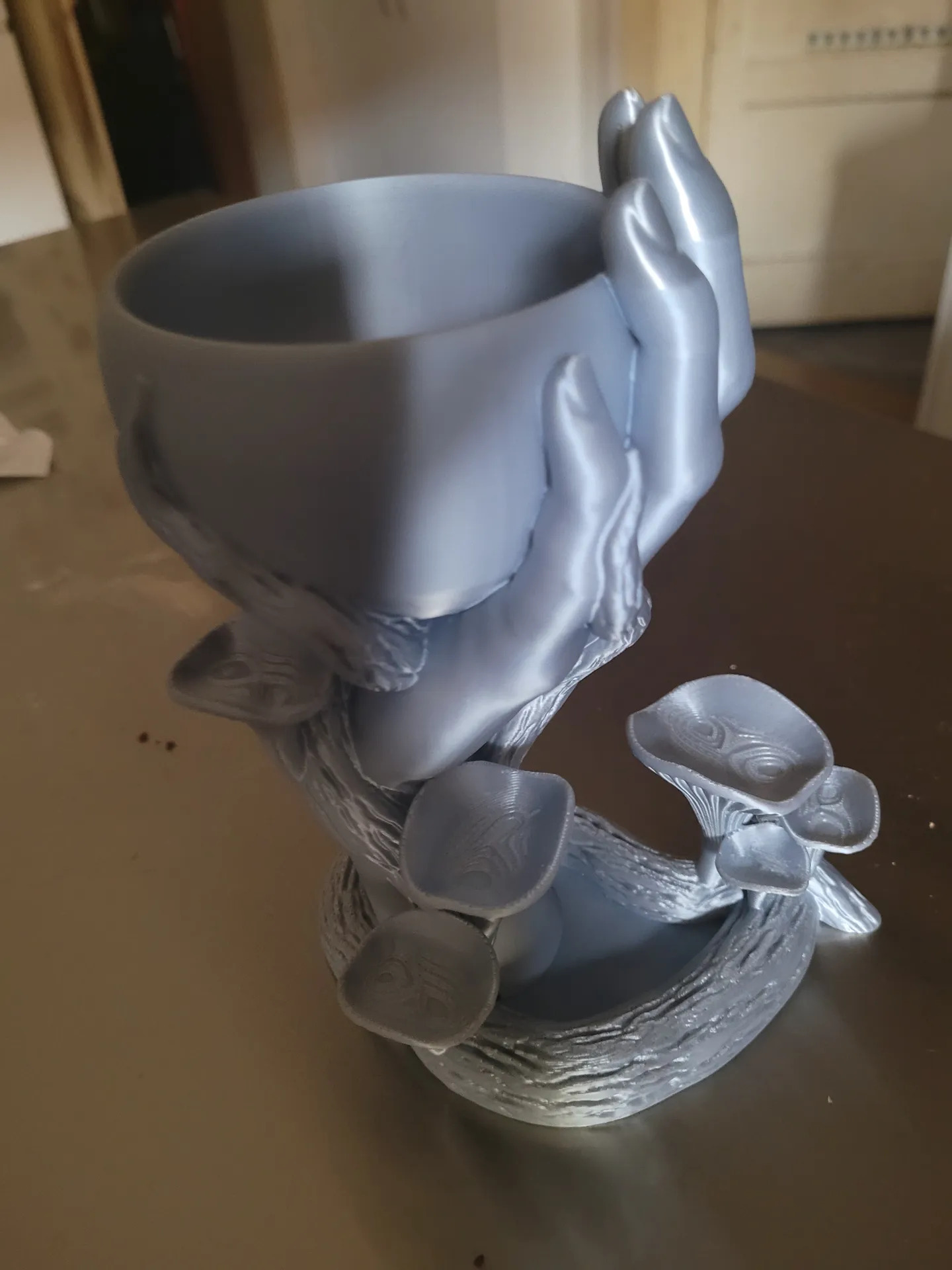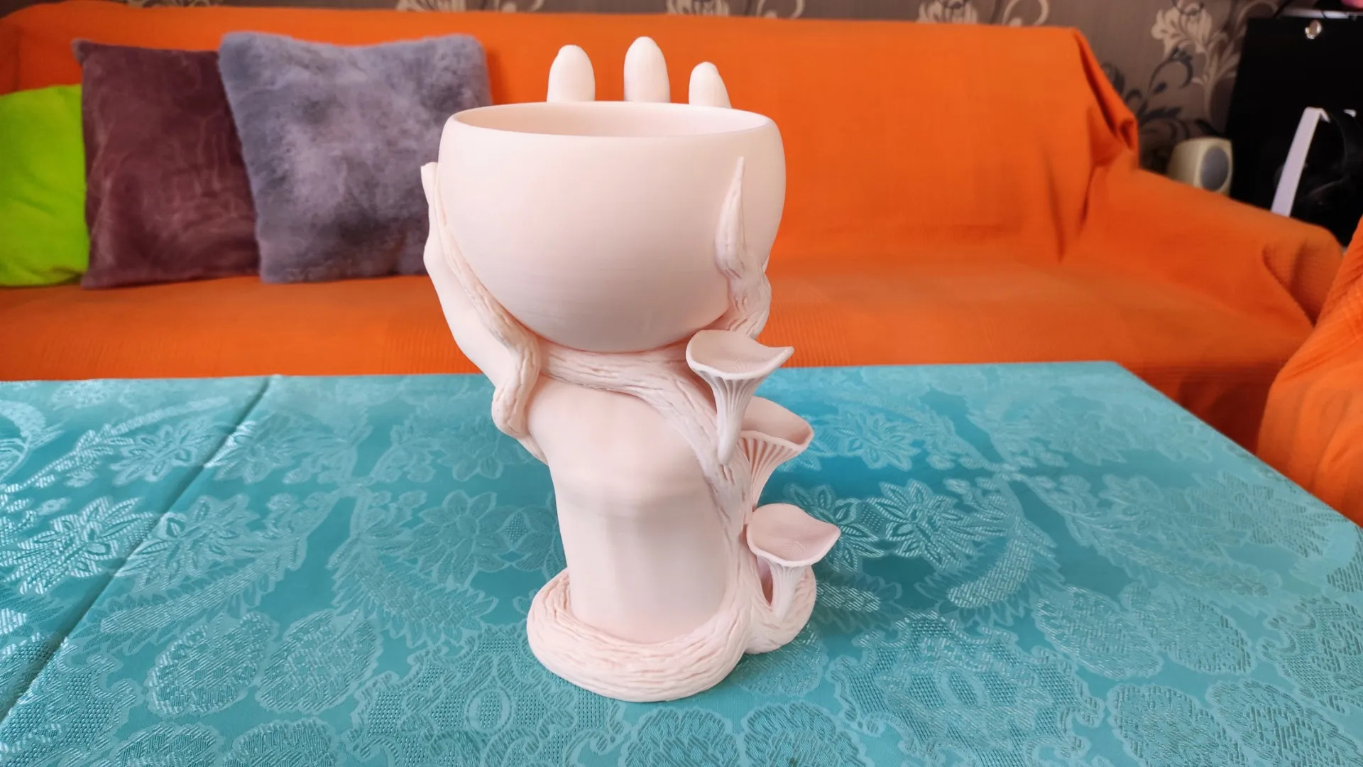 اگر به دنبال گلدانی خاص و منحصر‌به‌فرد هستید که تلفیقی از طبیعت و هنر مدرن را به فضای شما بیاورد، گلدان رومیزی طرح دست و قارچ مدل Deco Hand 04 انتخابی متفاوت و الهام‌بخش است. طراحی این گلدان با بهره‌گیری از فرم دست انسان و رشد قارچ از میان آن، مفهومی از زندگی، رشد و پیوند انسان با طبیعت را به تصویر می‌کشد.