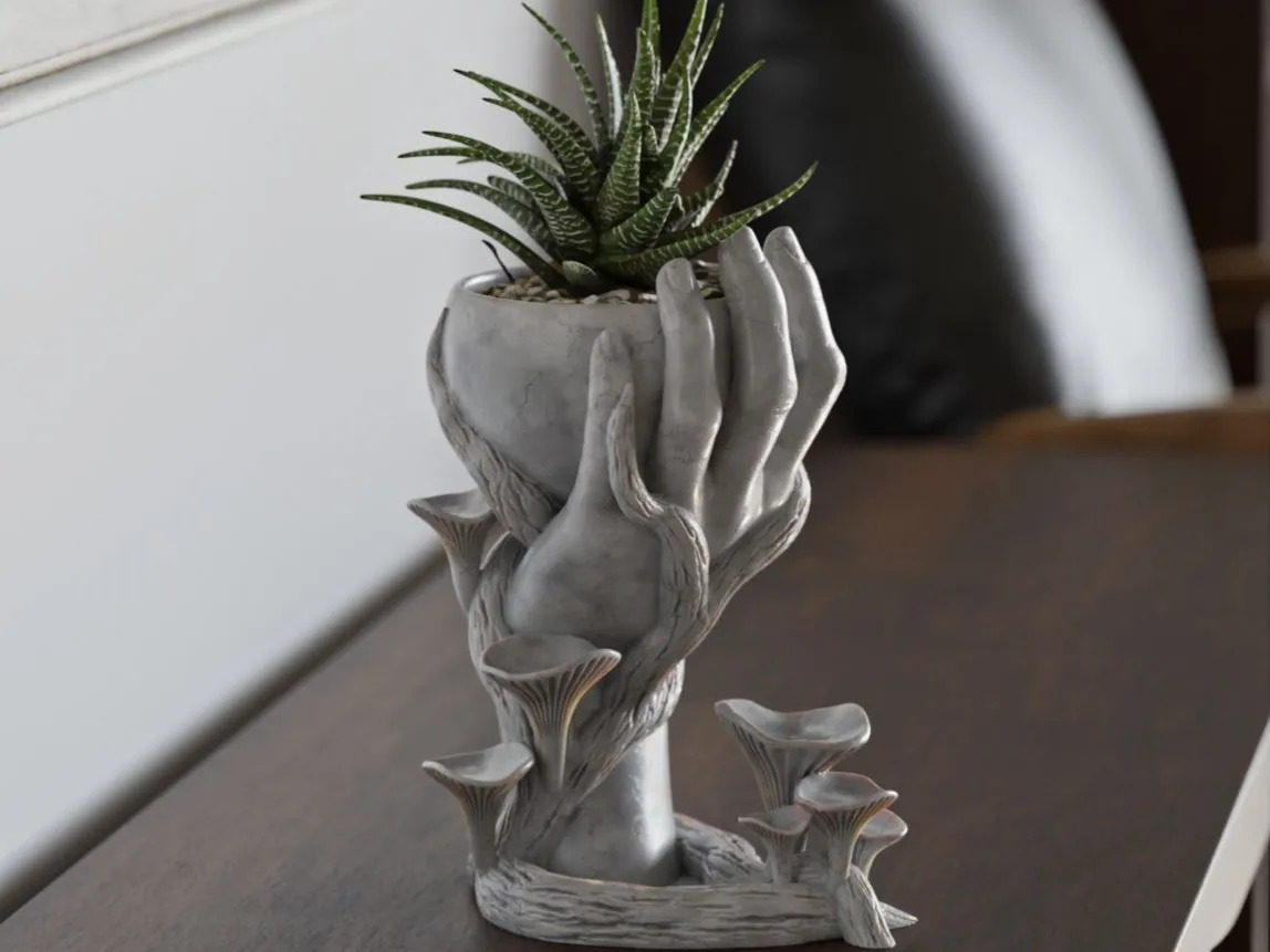 گلدان پلاستیکی رومیزی طرح دست و قارچ – مدل Deco Hand 04